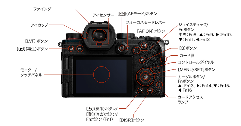 採用鋁鎂合金機身具備防滴防塵規格的 Lumix S5,相機的人機介面方面可以注意到依然有著以紅色 CINEMA 元素點綴的轉盤與錄影按鈕。既然是錄影先決的定位,全翻轉觸控螢幕的規格也不在話下(螢幕解析度為 184 萬點)並且搭載有最高 5GHz 的 Wi-Fi 以及藍牙無線連接的支援 。