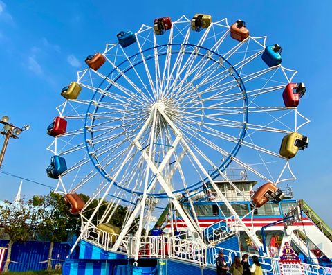夜晚時摩天輪還會發出七彩光芒,超級唯美浪漫,很適合情侶約會度過甜蜜時光。
