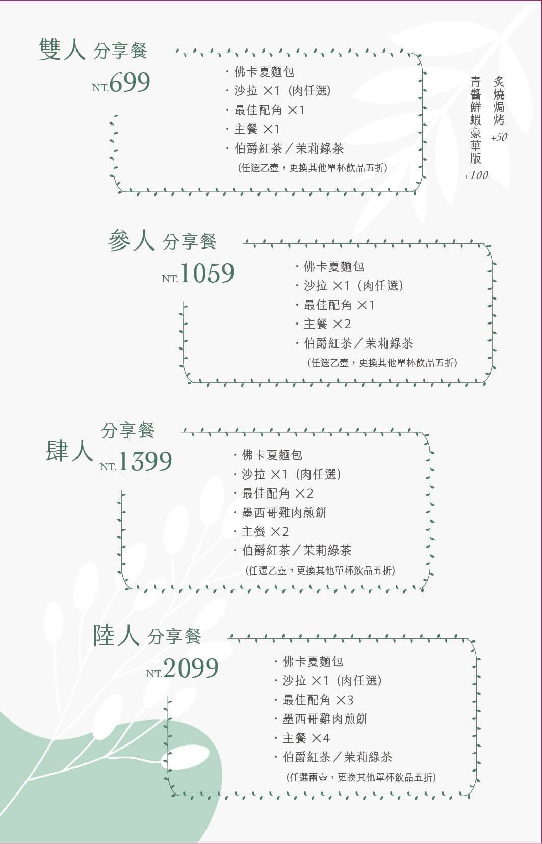可點我去官方臉書查看比較詳細,就不佔用篇幅,只貼上多人分享餐的菜單給大家參考一下