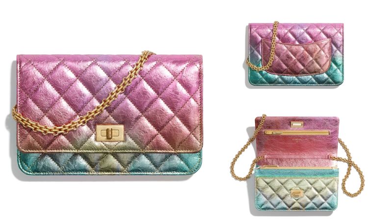 夢幻的漸層搭配金屬色,讓這款 2.55 鏈帶皮夾在充滿未來感之餘,同時又擁有濃厚的少女心!這次品牌除了將這款經典包晚完美的小外,更用挑戰了皮革工藝,將山羊皮以特殊的鞣製方式呈現,將迷幻的色彩呈現於這款皮件上。( 商品售價:NT$88,200)