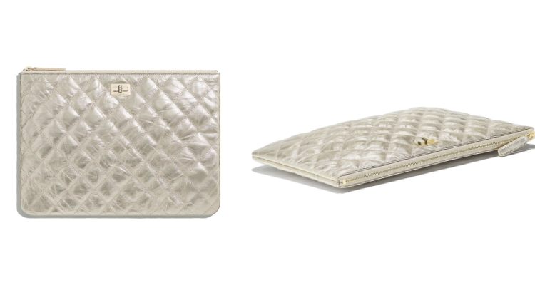 珍珠一直是 Chanel 非常重要的設計元素,這次品牌在這款手拿包上保留了 2.55 經典的鎖口,並在小牛皮上以特殊的染製技法,呈現出宛如珍珠般的金屬光澤,讓簡約俐落的包型設計,同時也擁有優雅的氣息。( 商品售價:NT$36,300)