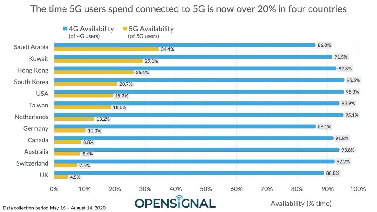 根據Opensignal 8月26日發表” 衡量全球5G用戶體驗的基準” ,台灣位居5G訊號與體驗表現全球第四,可使用率18.6%居全球第6,表現相當不錯,應該就是解答了 (詳見”這篇” ) !