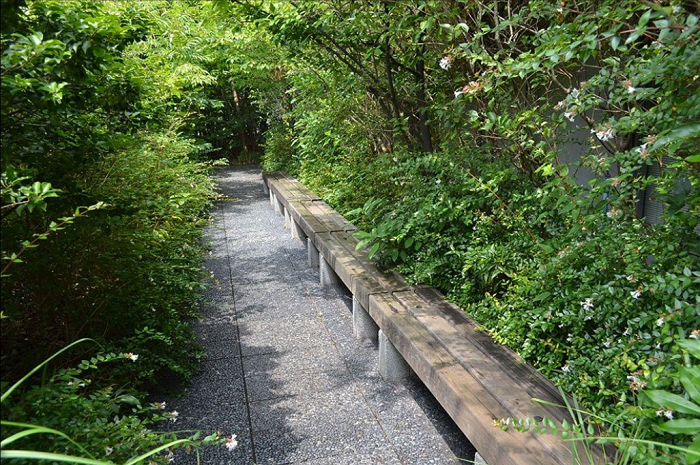 路上隨處可見小石鋪路,就算下雨也不會輕易滑倒。看茂盛的枝葉在頭頂伸展,不知名的小昆蟲於叢中亂飛亂舞,讓人忘卻自己明明身處在都市裡頭。一旁還有寫有植物名字與特徵的小牌子可以參考,不妨認識一下。