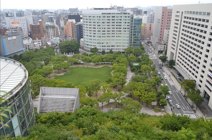在外觀上,採用了「大刈込」的造園手法。利用高低落差來進行景觀設計是基本,在營造美感的前提之下,這座階梯花園還必須與天神中央公園融為一體。屋頂綠化的面積從2至14層約5,400平方公里,範圍相當廣闊。建造之初有76種共37,000棵植物,在那之後經過補植以及野鳥等動物的幫忙之下,如今已增長到有120種、約50,000棵植物的規模!