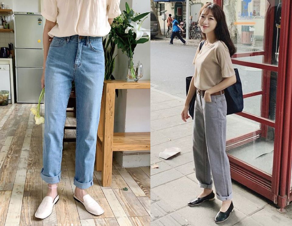 煙管褲可以修飾比較大的臀部,若再搭配上襯衫和軟料的西裝外套,就會是俐落又充滿品味的上班穿搭;老爹牛仔褲就相對休閒了,編建議嬌小女孩可以捲上褲管露腳踝或搭配跟鞋,才不會被大剪裁的老爹褲給淹沒唷!