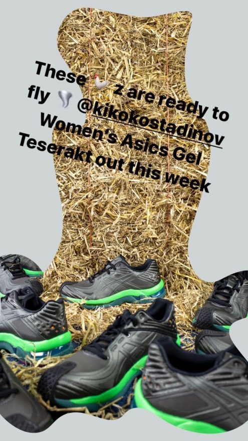 另外,Kiko Kostadinov 女裝設計師 Laura、Deanna Fanning 在 Instagram Story 分享,她們 2020 FW x ASICS 聯名也即將在這週登場,與男裝使用相同基底,並以膠膜面料呈現另一種風味,有興趣的女孩們可以關注 @laura_deanna_fanning 動態。