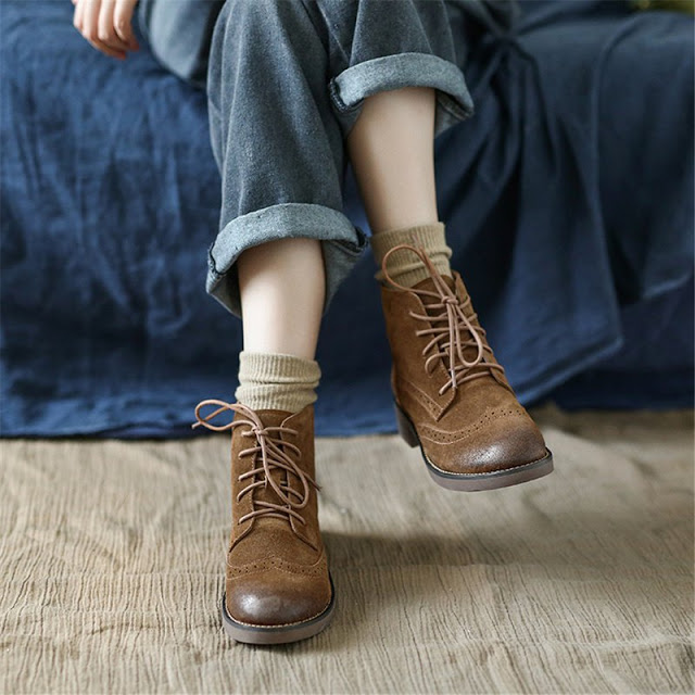 這款馬丁鞋有布洛克風的刻花圖樣,一眼就讓人覺得經典又復古,也很容易和學院風、英倫風和森林系的裝扮做混搭喔!