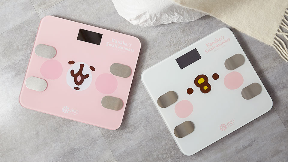 iNO藍芽體重計最新推出的卡娜赫拉聯名款一共有兩個顏色,不管是卡娜赫拉粉紅兔兔款或白色P助款都可愛到瘋掉,是不是覺得令人崩潰的量體重時間變得稍微療癒一點了啊?iNO藍芽體重計除了長得可愛,使用起來也是非常安全!特別採用堅硬的高強度鋼化玻璃材質,能夠承重高達180公斤,就算把一台冰箱放上去也是完全沒有問題~ 雖然材質堅固,但整體設計非常簡約又輕巧,厚度比一本雜誌還薄,更貼心地做了安全防滑設計和弧邊圓角,不用擔心不小心撞到邊角,也能讓量體重的時候重心更穩,獲得更準確的體重哦~