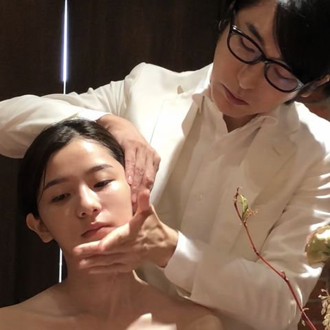 一樣是使用比平常更多量的乳液均勻塗抹於臉部,再取刮痧板針對輪廓線條與特定穴點進行按摩。注意不要太過用力,以免造成臉部微血管破裂出現紅腫等問題。