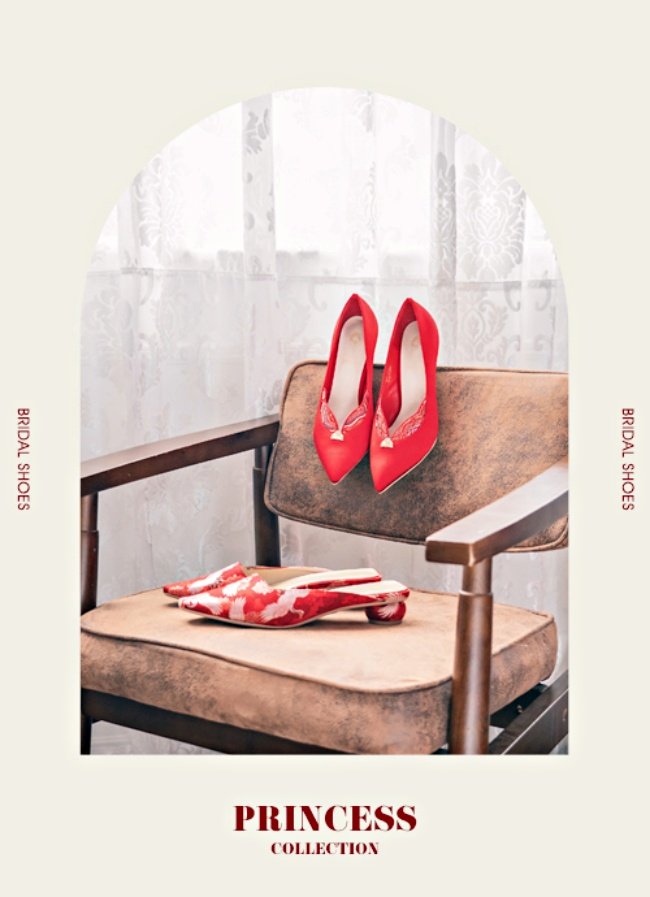 不只西式婚紗能夠找到御用婚鞋,中式婚紗也有命定鞋款,這一波以迪士尼「花木蘭」穿著的中式龍鳳掛為靈感,結合精細繡布製作,還在鞋面採用典雅的中式髮髻飾釦,一穿風韻十足,絕對迷倒婚禮一眾賓客!
