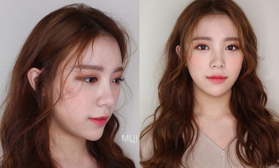 最後就是稍微用圓梳吹鬆、或是平板夾稍微夾的弧度,從正面看,即使塞耳後、鬢角也可以修飾整個下顎,側面看的話、一小搓的胎毛瀏海則可以修飾髮際線跟臉型呢!