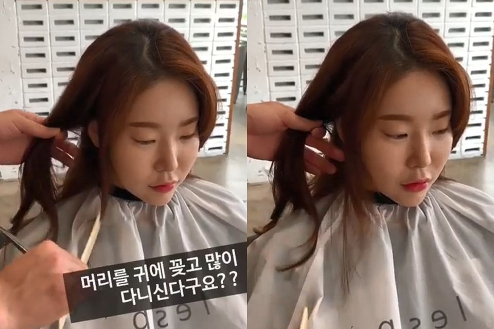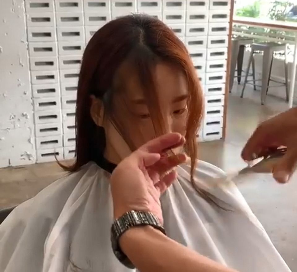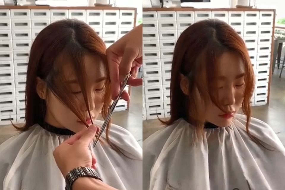 先將瀏海撥到一邊、接著分出另一邊落在耳朵前的部分,髮型師建議不用太多、避免一次失手,第一次剪的話,可以先分出薄薄一片修剪,之後再視情況增加修剪區域會比較保險。