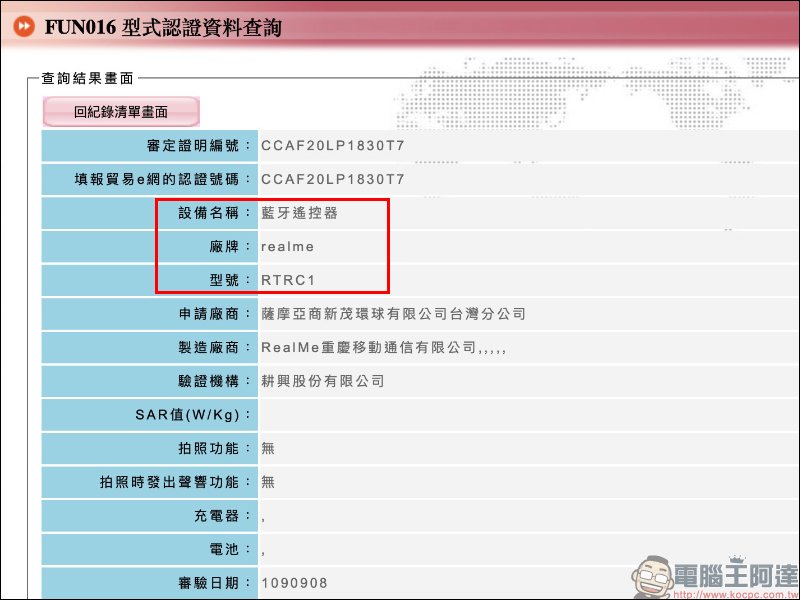 realme 在台灣市場目前除了智慧型手機、智慧手錶/手環這類穿戴裝置、行動電源、真無線藍牙耳機與後背包這些產品,最近在 NCC 認證通過的產品清單中,筆者發現了 realme 有款型號 RTEC1 的藍牙遙控器通過認證。