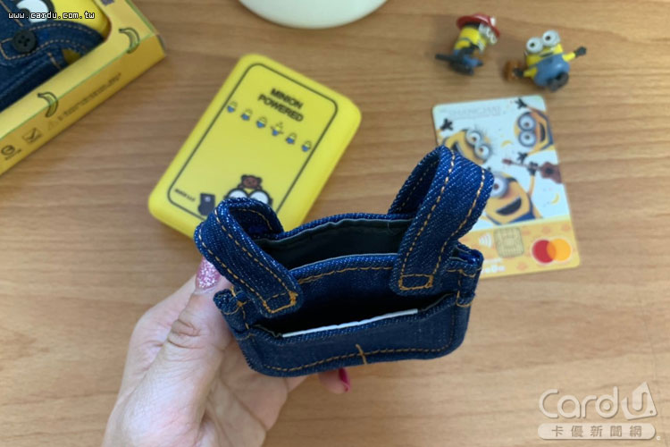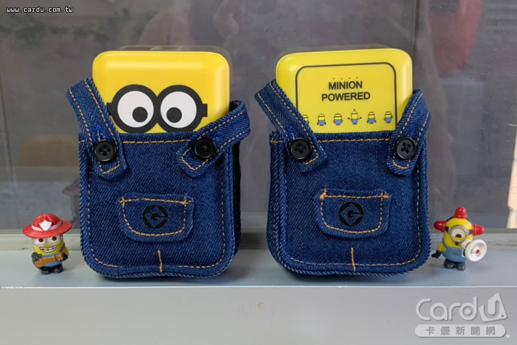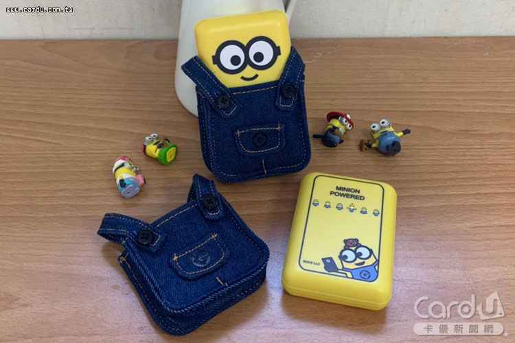 ▲行動電源外,另外附加一個牛仔布,就像小小兵穿著衣服一樣是不是很可愛呀!