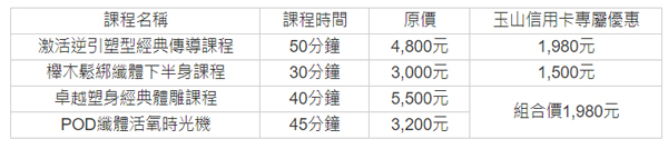 活動期間內,持玉山銀行信用卡至「媚登峯」消費,指定課程享專屬優惠。