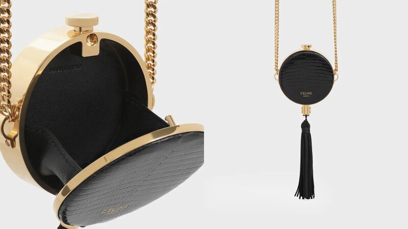 延續品牌一貫的極簡作風,CELINE在秋冬推出全新小型圓形口金包,選用蜥蜴皮革製作,搭配金色鎖扣及鍊條,並於包款下方加入流蘇設計,展現復古與現代美學完美融合,整體精緻小巧,且既可肩背也可手提。