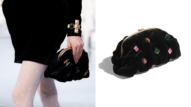 出自2020秋冬系列的Chanel復古口金包,採用絨布面料打造而成,搭配金色開釦,其包款更鑲有不同材質、配色所製成的品牌標誌性雙C Logo,整體復古,又極具格調,完美詮釋品牌雋永的韻味。另外,品牌也推出鑲有寶石的款式。