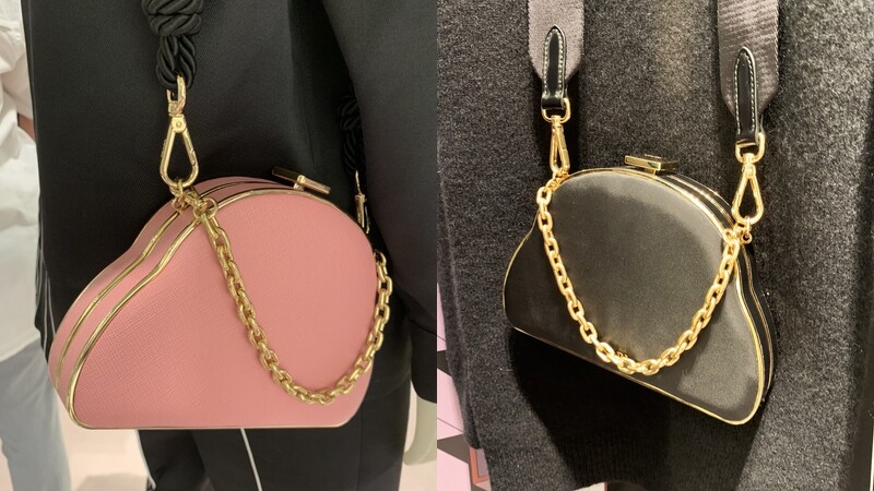 2020/21秋冬系列全新登場的造型口金包,是全部包款中最獨特,擁有幾何造型,像極了雲朵,其配色更選用甜美的嫩粉色調,搭配金色鎖扣,以及黑色麻繩肩帶,完全就是主打少女的必備包款。