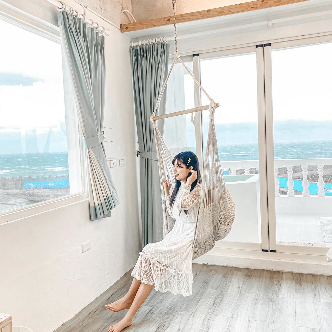 「白色領地日出海景民宿」同樣位在滿州鄉,整體風格呼應名字一片雪白,最著名的就是房內的懸空吊椅,以及超級好拍的白色盪鞦韆!無論白天或夜晚,從陽台望出去的景色總是美不勝收,早晨可以欣賞港口漁船風景,天色漸暗後又是另一種韻味。民宿還特別在陽台設計了小浴池,讓妞妞們可以穿上性感比基尼與背後的漁港拍照,既能滿足女孩們愛自拍的心,又能達到舒壓的效果,喜歡簡潔純白風格的妞妞們,絕對不能錯過這間民宿啦!