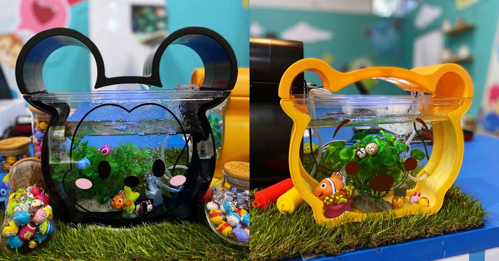 這次還特別推出米奇、小熊維尼造型的魚缸,耳朵部分可以打開,設計相當萌啊!