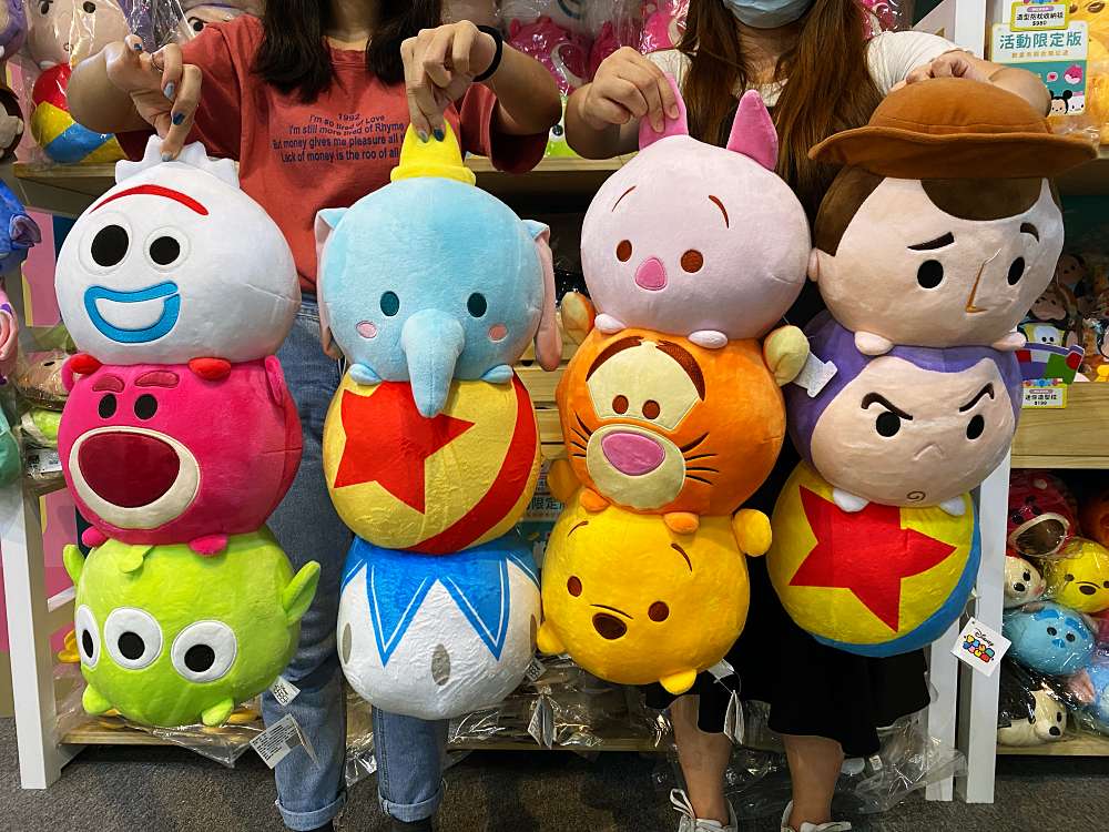 展場還有大型毛絨抱枕、玩偶可入手,妞編輯私推TSUM TSUM造型娃娃(第二張照片)給各位,鬆軟的觸感相當治癒心靈,快準備對它抱緊處理!