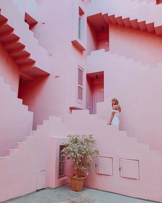 La Muralla Roja是必住的民宿清單,一系列相連的公寓,幾何設計,粉嫩的牆身,加上面向著藍藍的大海,整個畫面就是治癒!住這裡的話,真的有自信留整天留在裡面拍照不出門呀!注意一下,為尊重住客私隱,非住客是不可隨便進出拍攝的,未有預約的sis就不要白走一趟了~