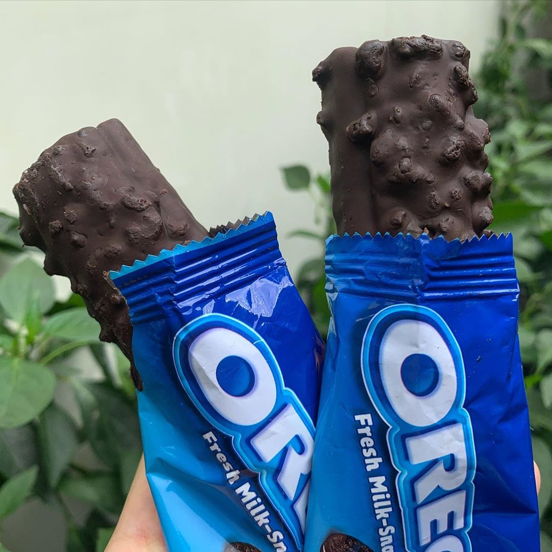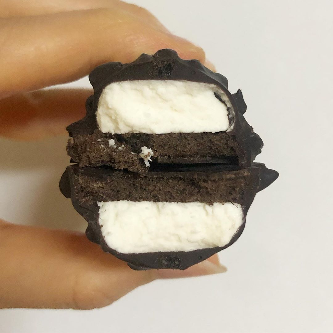 而大家也可以把OREO奶油蛋糕冰進冷凍庫後食用!冷凍過後的外層巧克力會更脆,而香草奶油夾心口感冰淇淋~