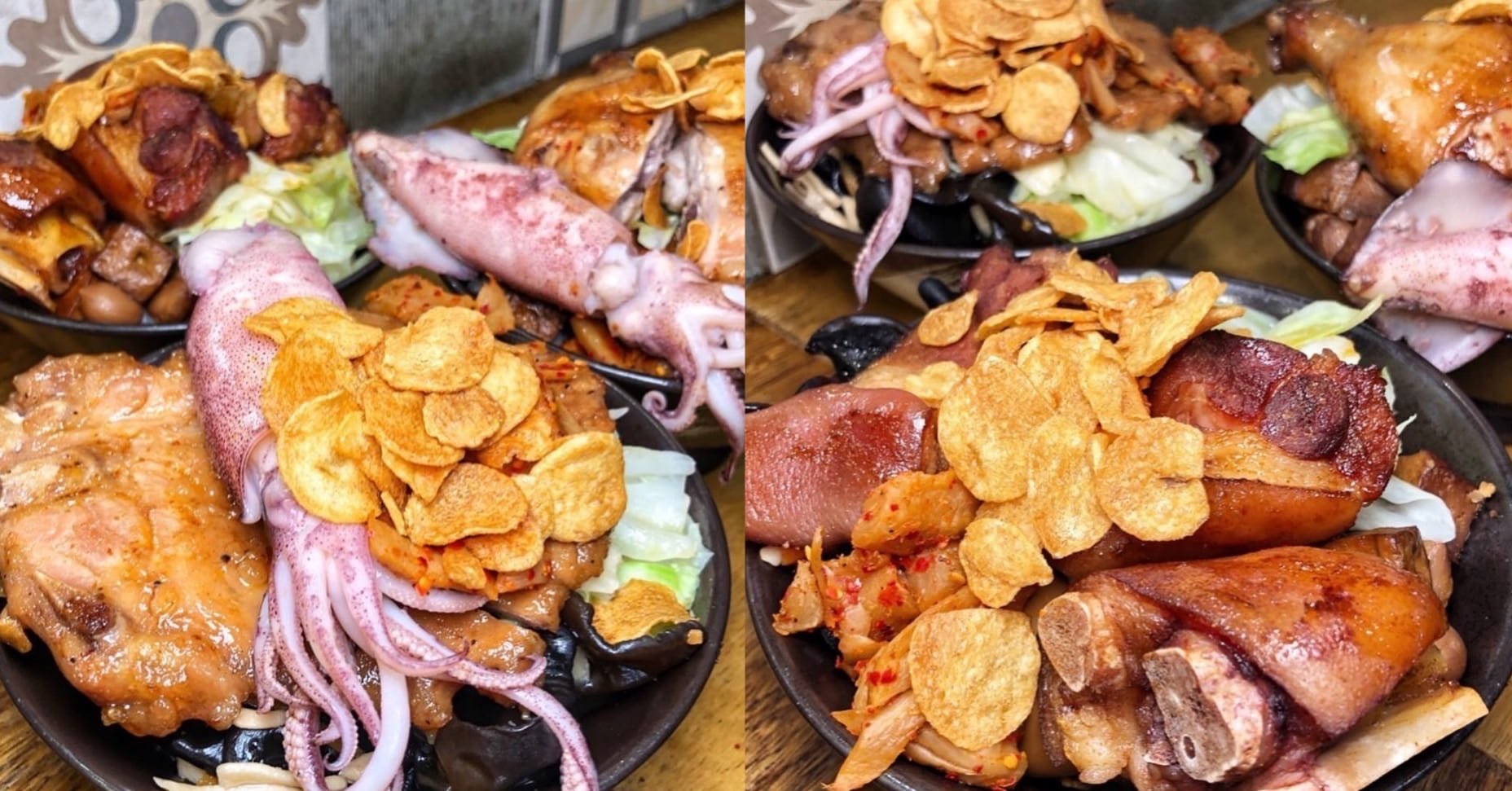 懷舊古早風味便當非香香老師莫屬!雞腿/排骨+小卷海陸雙拼好滿足,平均一碗90~130元,每一碗的料都多到看不到飯根本物超所值,肉滷的很入味超級香,肉嫩又好入口,豬腳外Q彈牙加上蒜片提味真的好令人回味!喜歡傳統小吃的你,怎麼可以錯過呢~