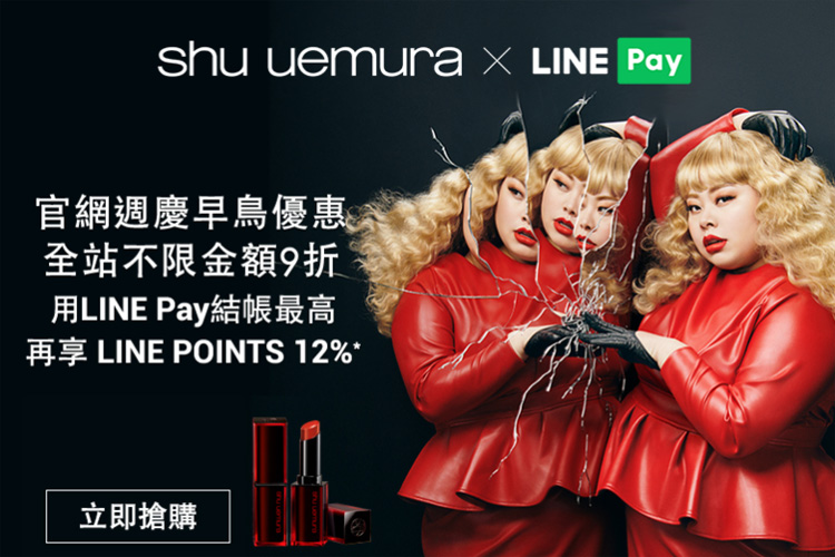 活動期間內,已註冊LINE Pay的用戶於SHU UEMURA植村秀官方網站結帳時透過LINE Pay付款,享以下優惠: