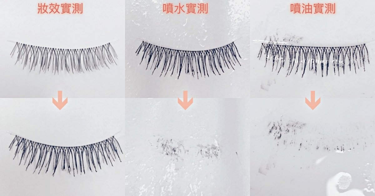 #防水實測:以噴瓶噴灑3下純水,觀察睫毛膏遇水後的暈染狀況。