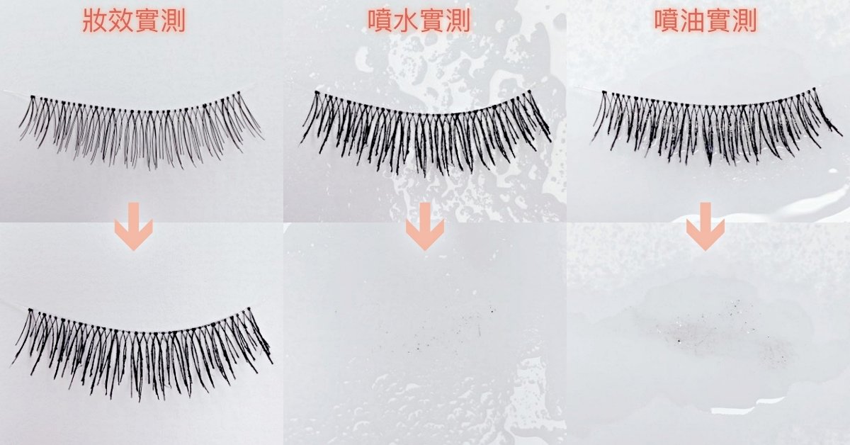定型蠟薄膜配方包覆睫毛,在假睫毛上只刷一層是濃黑的纖長效果。實測遇水有輕微掉渣、遇油則有些微的暈染現象。卸妝算好卸,實測約輕搓6~7下就能卸除乾淨!