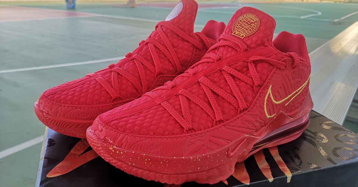Lebron 17 low-titan聯名款式,鞋子上多了許多小細節,從鞋身上的浮雕(印著titan及馬尼拉字樣等)、鞋舌上的標誌、甚至是鞋墊的字樣,都超特別;而且以紅色作為基底,很不低調的低調阿,很有愛。