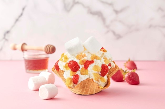 「白馬王子」口味為「蜂蜜冰淇淋」,耗時將近半年的時間研發,使用100%蜂蜜,以黃金比例製成綿密又細緻的蜂蜜冰淇淋,再拌入「草莓」和「原味脆片」增添多層次口感和香氣,佐以「造型雪白棉花糖」,夢幻的外觀彷彿就像是童話故事和偶像劇中會出現的「男主角」,帶領妞妞們展開一段愛與童話的故事!