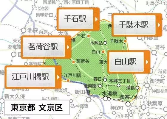 以東京大學為首,包括御茶水大學、醫科齒科大學在內的15所一流院校都集中在這裡,配套的附屬中小學、大學附屬醫院等也在周圍,也有東京「醫都」之稱。