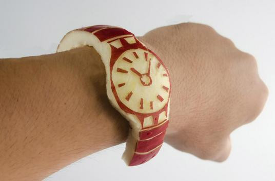 雖然完全沒有iWatch的任何一個功能(時間一天也只能準二次),但是這款Apple手錶也有iWatch完全不可能有的「可食性」功能。在現在食安問題這麼嚴重,身為消費者真的超悶的,這款永遠停在十點六分的手錶,看膩了以後就吃掉吧…安全健康又環保哩…