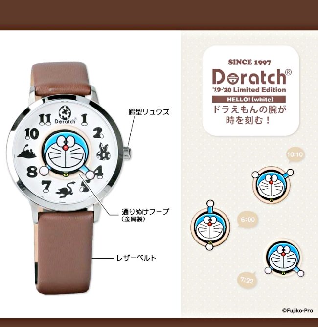 日本玩具品牌Eyeup(アイアップ)每年度都會推出《哆啦A夢》限定「Doratch錶款」,每一次出品都讓粉絲們瘋搶珍藏,去年也響應新電影《哆啦A夢:大雄的新恐龍》,推出限定紀念錶款「2019-2020 Doratch Limited Edition」,不只電影中出現的經典元素恐龍蛋、時光布、小長頸龍皮皮(嗶之助、小嗶)偷偷變成超萌時間刻度,指針還藏驚喜設計…