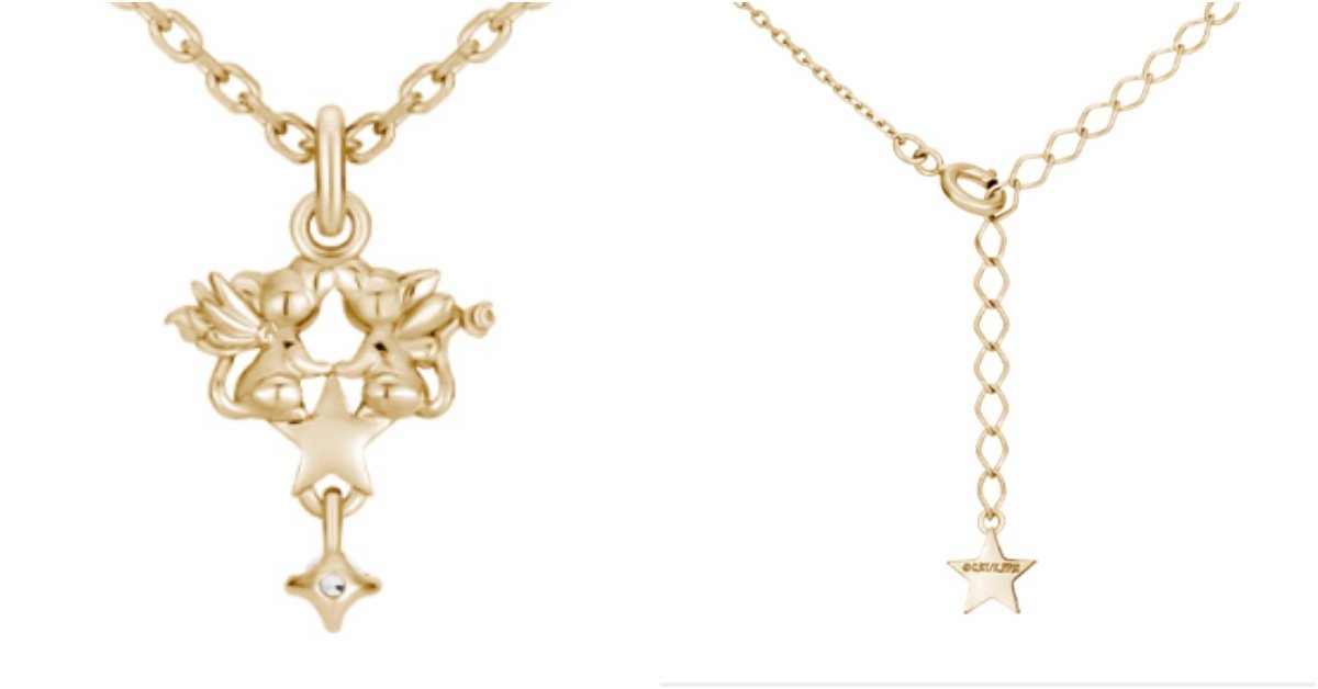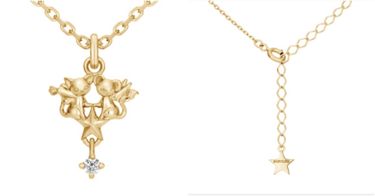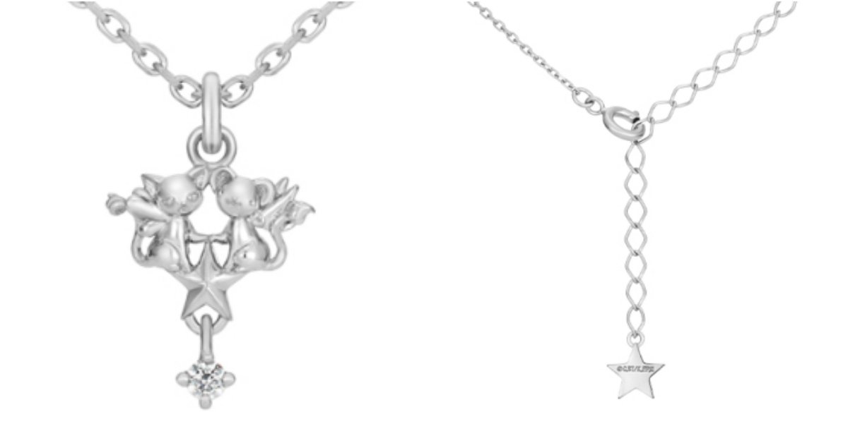 「小可&斯比聯名項鍊」分別可選擇10K黃金、18K黃金以及銀質3種款式,小可以及斯比難得乖乖的在星星上互相有愛地手拉手,轉頭可愛的看向前方,下方還點綴一顆閃亮水鑽,戴上身彷彿一邊走一邊能聽到他們倆吵鬧的聲音。(日本在9月8日已經開放預購囉!)