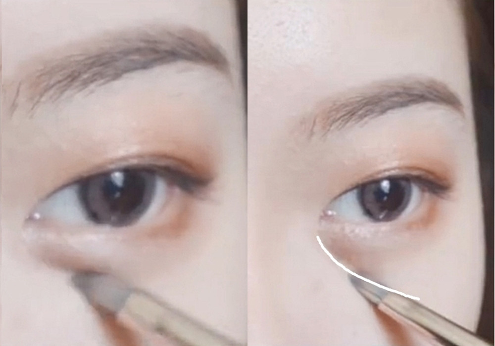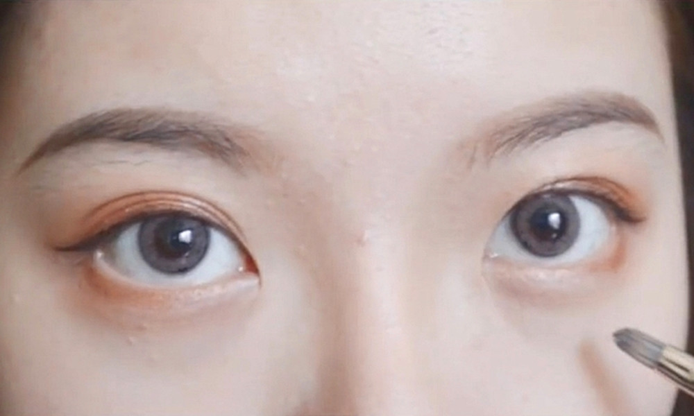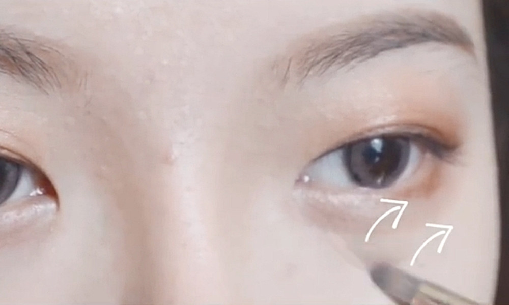 淚溝眼袋遮瑕技巧2:順著淚溝眼袋紋路畫上,向上暈染