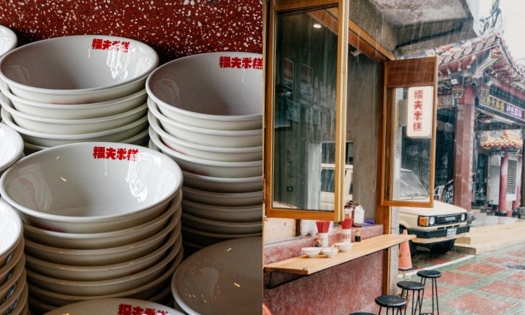 老闆糯夫是一個非常念舊的人,從以前的小攤車、到現在的老房小店面,處處可以感受到濃厚的傳統風味,尤其磨石子廚房、精米筒、大同磁器、餐具等,每一處都讓人目不轉睛!