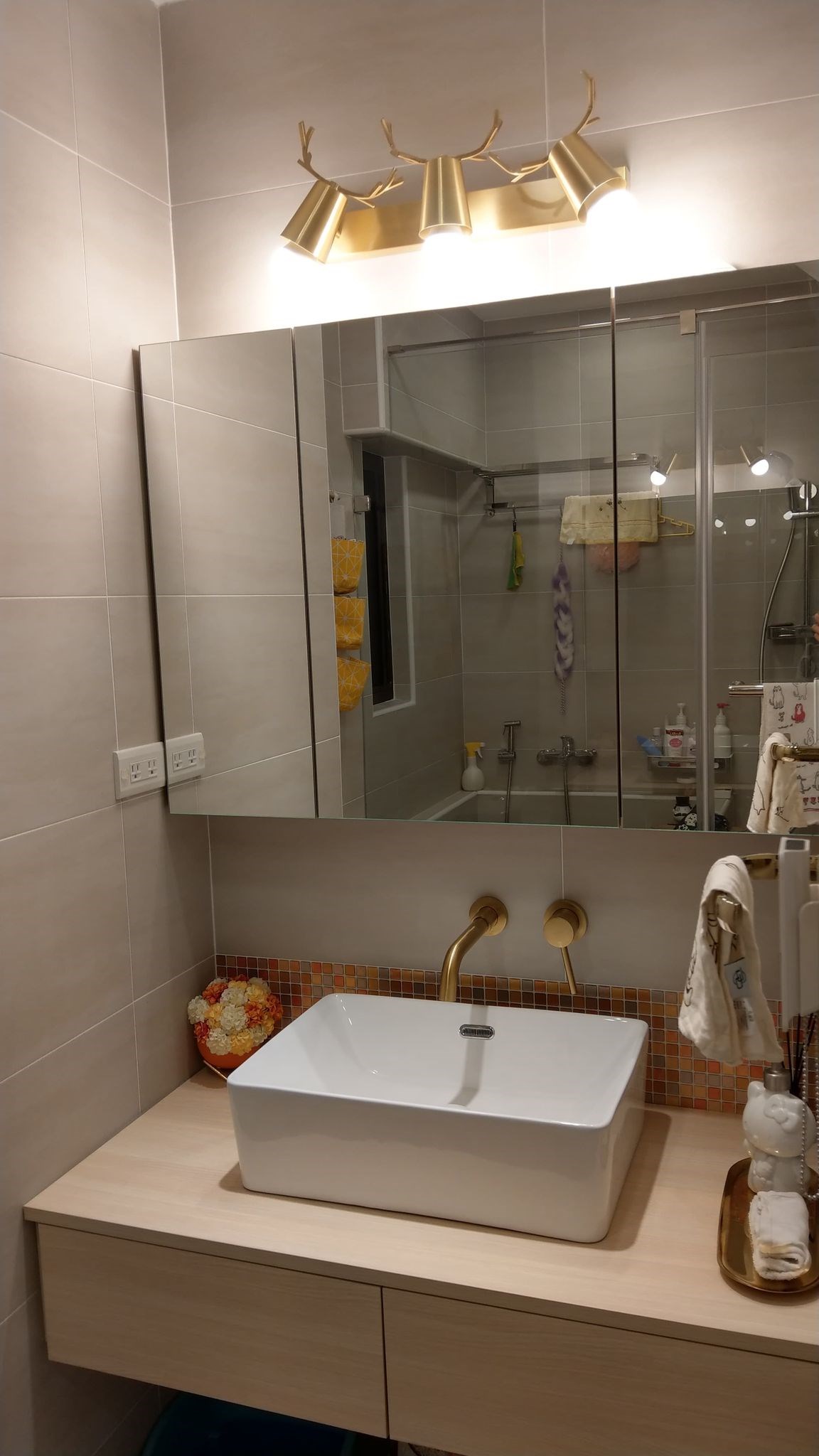 鏡櫃上方的燈飾也是在淘寶買的,來台灣再自己裝燈泡,金屬的品質很好,化妝的時候開下去很明亮。