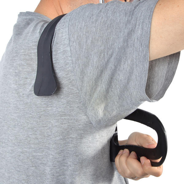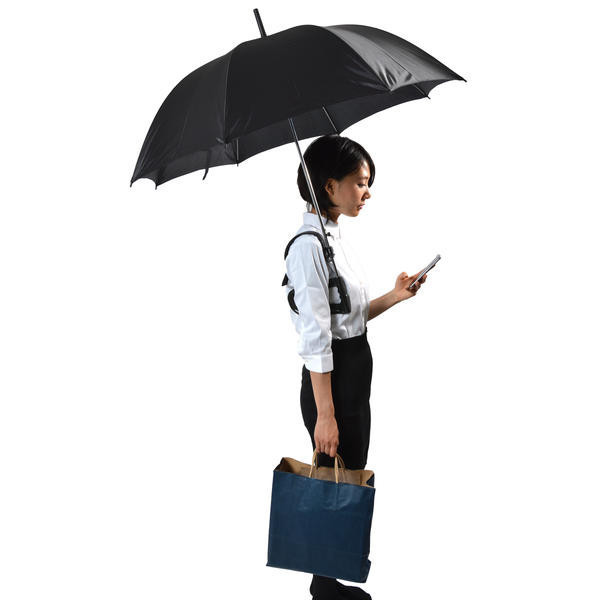 使用方法很簡單,當你打開雨傘時,先把勾勾調整一下位置卡在肩上,然後再把扁把手夾在腋下,當下立馬又空出雙手可以繼續破關做更多的事。