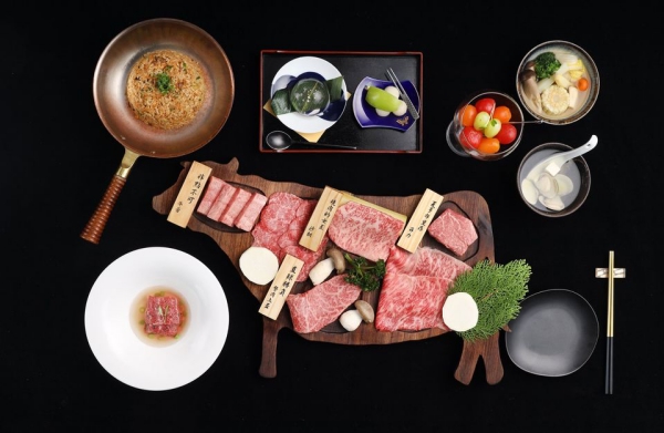 店內以普魯士藍為底調,搭配金屬邊框裝飾、銅燈點綴,以沈穩內斂、低調奢華的裝潢風格貫穿整間餐廳,顛覆大家對燒肉店的既定印象。肉品採「一頭牛」方式進口,嚴選 A5 等級的日本近江和牛,是與松阪牛、神戶牛齊名的日本三大和種和牛之一,由專業職人依據部位的不同,順應其油花、筋路、纖維、肉味等自然條件,巧手變化出 8 種最適合且兼具經典與創新風味的料理主題,融合日式、歐式以及台灣特有的食材元素,搭配當季時蔬、空運海味,提供能讓饕客眼睛為之一亮的風味佳餚。