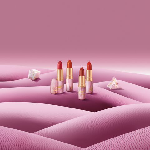 M‧A‧C 經典子彈唇膏#CHILI、#MARRAKESH、#LADYBUG、#RUBYWOO,四款熱銷美色換上一身甜辣粉金大理石包裝,從內到外美到酥麻尖叫,拿出化妝包瞬間就成時尚指標!