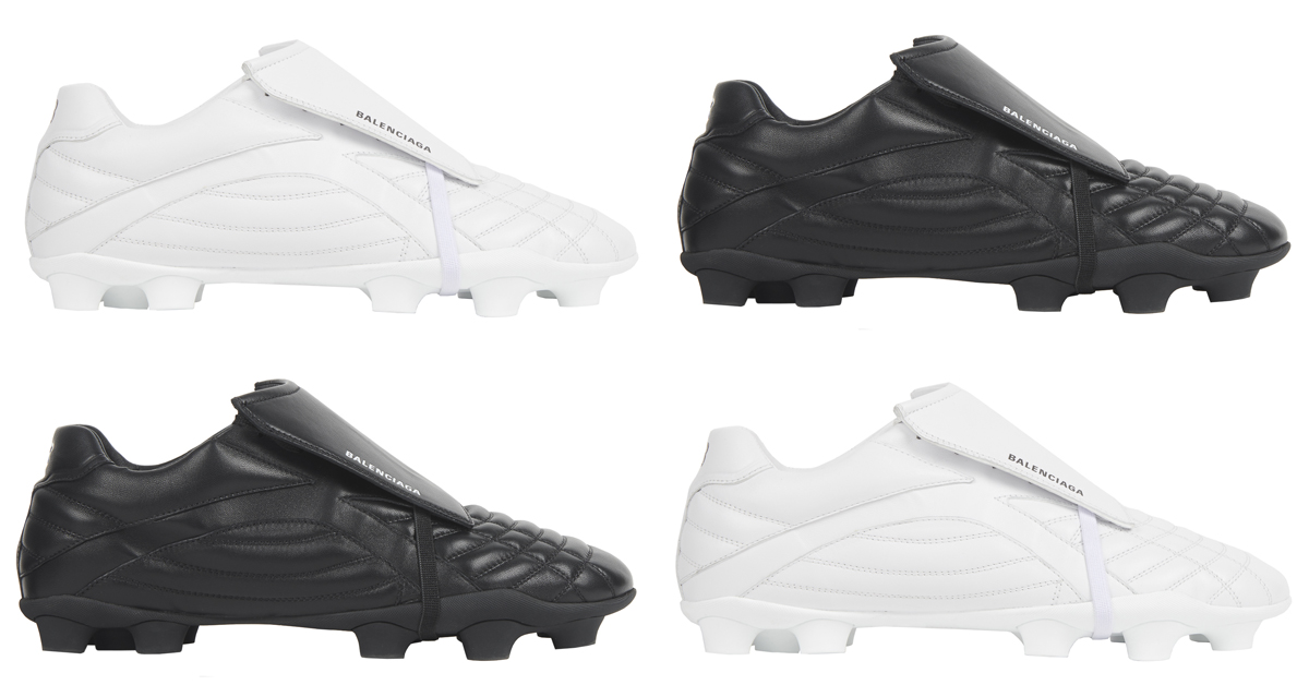 即將全球上市的全新鞋款,採用非皮革的啞光技術材料所製成,擁有俐落的黑色、白色,以及其它繽紛亮眼的螢光色等鞋款,繁複的鞋面縫合技術、往前翻折的彈性鞋舌加上鞋底的圓釘…儘管酷似真正的足球鞋,但其實這是一雙專為日常穿著而設計的運動鞋。未來不知在Balenciaga的廣大魅力號召之下,是否又將成為一眾潮流人士必搶的熱賣鞋款呢?拭目以待吧!