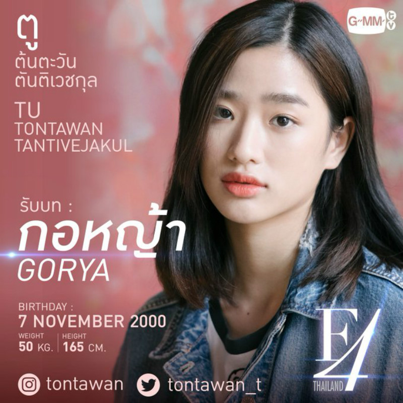 最後是萬眾矚目的女主角杉菜啦!由泰國20歲女星Tu飾演,白皙皮膚、靈動大眼和略帶性感的厚唇,擁有獨到氣質,站在身高動輒180公分起跳的泰式F4之中很像小妹妹呀!好期待她會怎麼詮釋充滿個性美的杉菜!