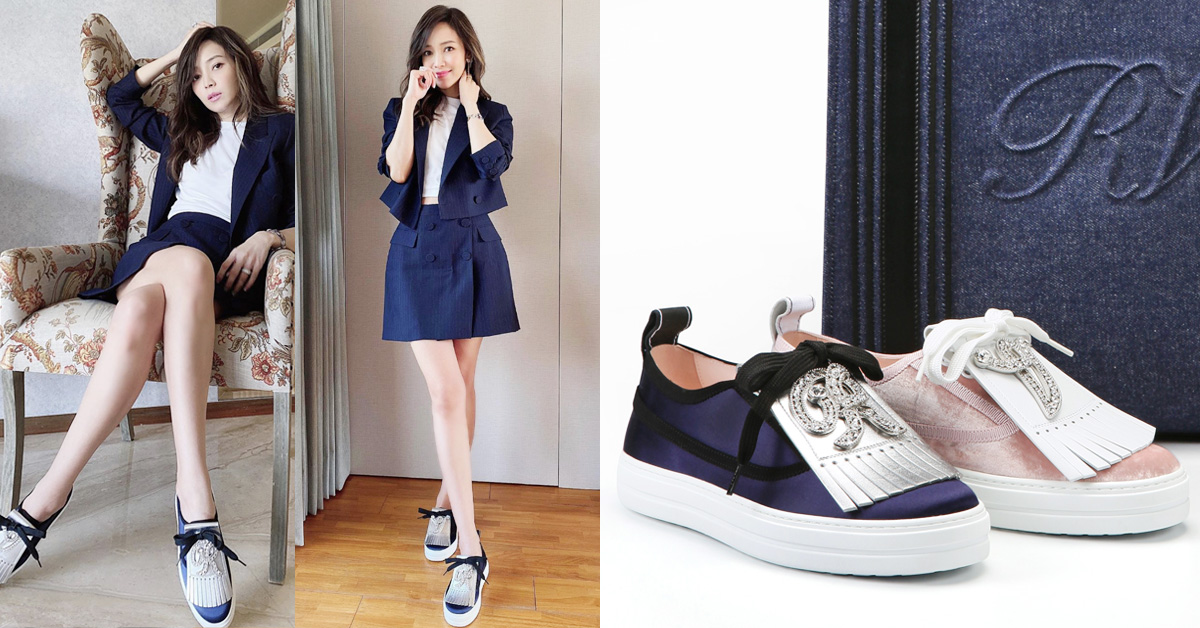 因為數量非常有限,都還沒正式上架,就已先被幾位愛鞋成癡的知名藝人耳聞搶先訂購,比如曾於訪問中透露家中有數雙美麗的RV鞋的侯佩岑,身為品牌忠粉的她又怎能放過能擁有全球獨賣的「Call Me Vivier Jewel」限定專屬色款的機會呢?馬上以俐落、修身的藍色短版外套及A字裙,搭配藍色絲質限量鞋,展現隨性優雅,她的IG曬照一po出馬上就有粉絲在下面留言:「完全就是系上校花〜」而且這鞋彷彿有種修飾腿型的魔力,不覺得她的腿看起來更長、更直嗎?真讓儂編心動啊〜