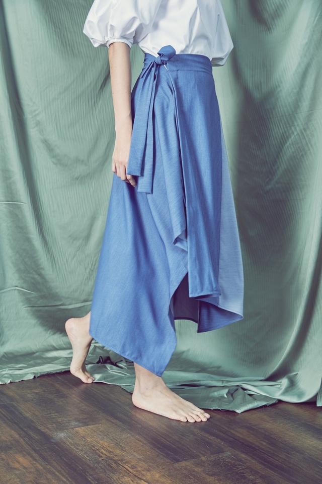YIBO - 丹寧不對稱套式側綁帶裙 NT$3,990