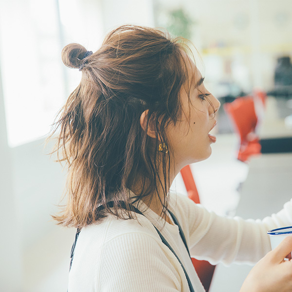 長度落在眼下與下巴之間的劉海,若是沒有特別整理使其落在臉龐就會看起來太過邋遢。這個時期的劉海非常適合利用電捲棒做出波浪感的彎度,就好像帶點自然捲的髮絲,再抹上些許髮油營造濕濕髮感就可以很有日系女生的時髦韻味。