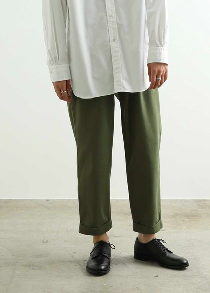 想讓身形比例更加修飾的話則建議可以挑選有著西褲版型的九分褲,前方的打褶設定能讓褲款更挺,也能使下身比例看起來更好。而打褶的九分褲也正適合與皮鞋一同搭配。是上班族能直接 COPY 的穿搭組合。