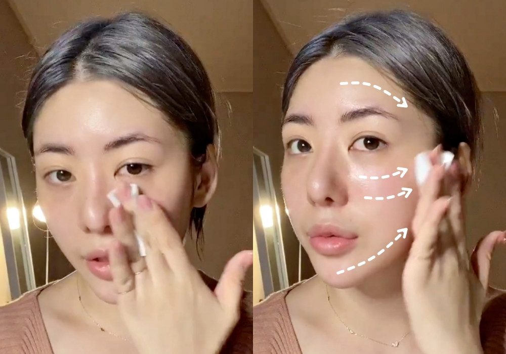 乳液或乳霜也是相同方式,不要一次抹太多,不僅吸收不完全、更容易導致脫妝,以少量多次的方式加強吸收。